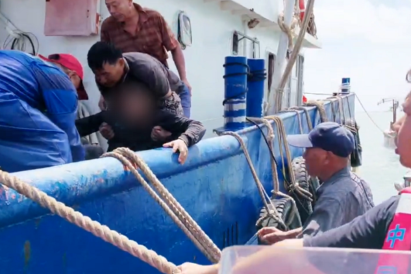 漁船上漁民腿部受傷嚴(yán)重(央廣網(wǎng)發(fā) 通訊員供圖)