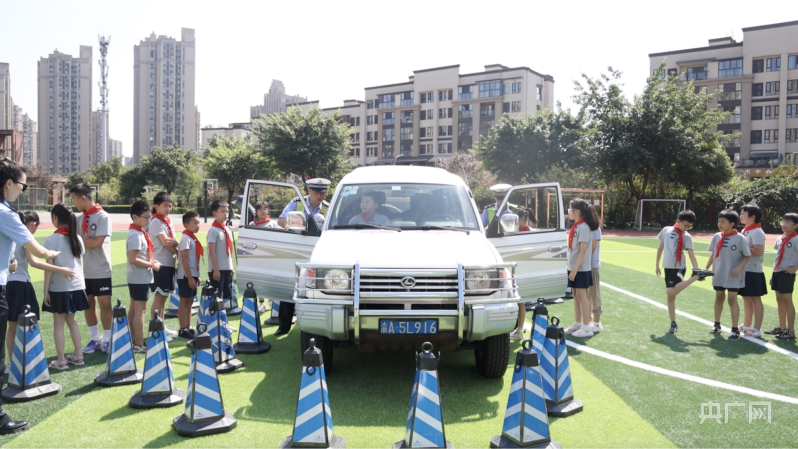 交巡警進(jìn)校園上“安全課” 萌娃們沉浸式體驗(yàn)汽車(chē)盲區(qū)避險(xiǎn)