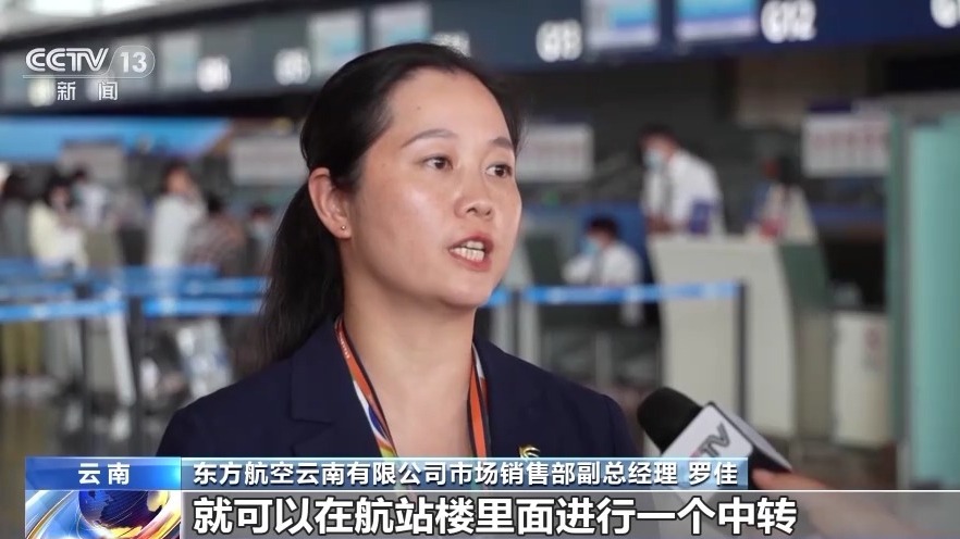 東方航空云南有限公司市場(chǎng)銷售部副總經(jīng)理 羅佳:旅客不需要出隔離區(qū),就可以在航站樓里面進(jìn)行中轉(zhuǎn),并且行李直掛,行李從始發(fā)站開始不用二次提取。