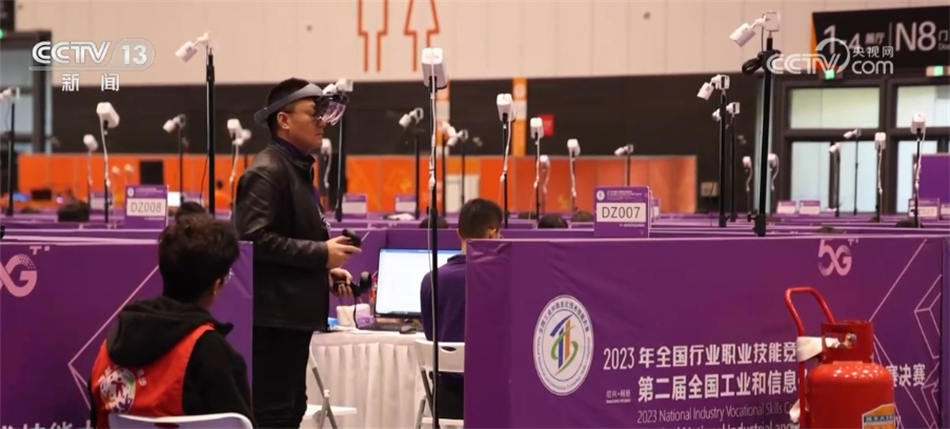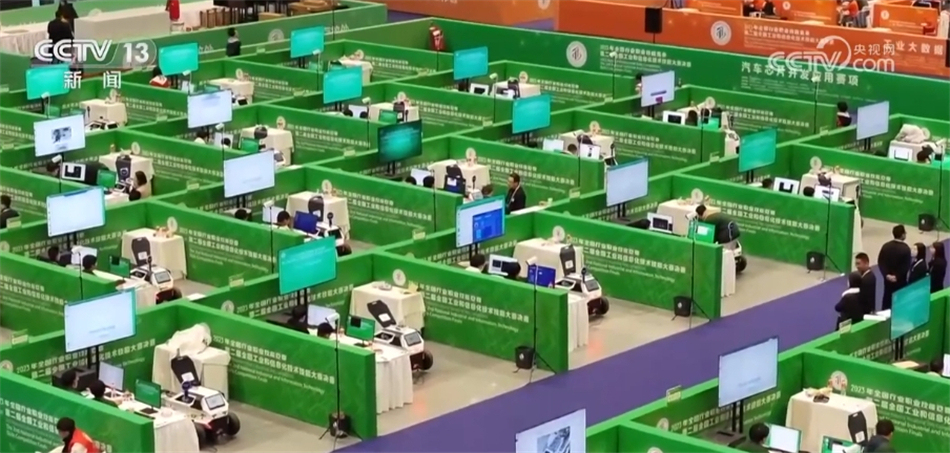 總臺(tái)央視記者 張叢婧:我身旁這一個(gè)個(gè)小隔間就是選手的比賽工位,可以看到有不同顏色,代表著四個(gè)賽項(xiàng),分別是工業(yè)互聯(lián)網(wǎng)安全、汽車(chē)芯片開(kāi)發(fā)應(yīng)用、工業(yè)大數(shù)據(jù)算法、5G+虛擬現(xiàn)實(shí)開(kāi)發(fā)應(yīng)用。除了工業(yè)大數(shù)據(jù)算法這一項(xiàng),其他三個(gè)賽項(xiàng)都是今年新設(shè)立的。