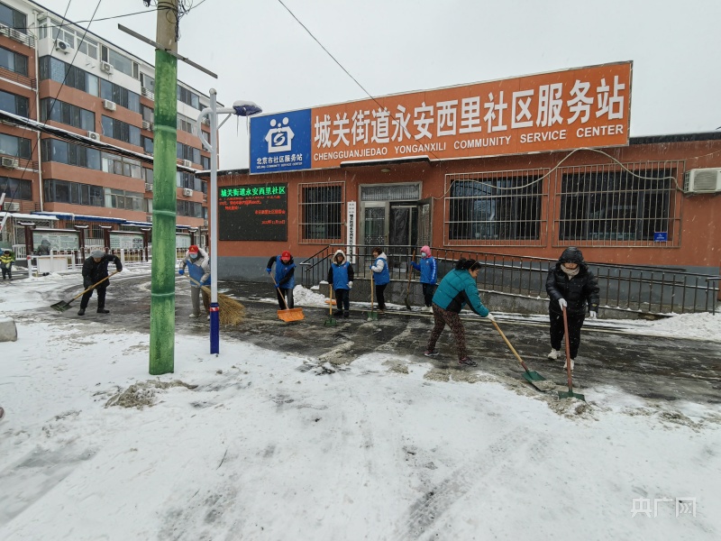 清理積雪(央廣網(wǎng)發(fā) 房山區(qū)城關(guān)街道供圖)