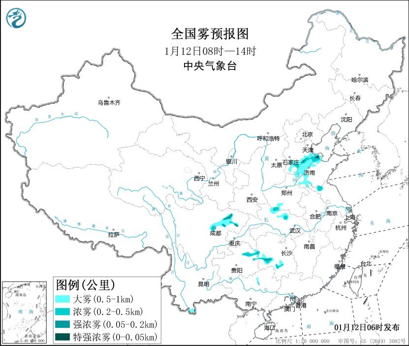 央視網(wǎng)消息:中央氣象臺1月12日06時繼續(xù)發(fā)布大霧黃色預(yù)警:預(yù)計(jì),1月12日的早晨至上午時段,河北南部、山東北部和西部、湖北北部、四川盆地北部、湖南西部、貴州東部等地的部分地區(qū)有大霧天氣,其中山東西北部、四川盆地北部、湖北北部、湖南西部、貴州東北部等地的部分地區(qū)有能見度不足500米的濃霧,局地有能見度不足200米的強(qiáng)濃霧。