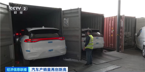 總臺(tái)央視記者 寧坤:在廣東深圳一處物流基地的前置倉,一批國產(chǎn)新能源汽車陸續(xù)裝入集裝箱,隨后將通過附近的蛇口港片區(qū)裝船出口發(fā)往東南亞國家。據(jù)了解,這是這家物流公司今年開年以后汽車出口業(yè)務(wù)的第一單。而在剛剛過去的2023年,由于汽車出口業(yè)務(wù)量猛增,他們在這里的倉庫面積短短一年間就擴(kuò)大了3倍。
