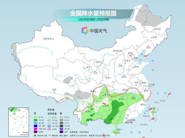 昨天,中東部大部雨雪稀少,降水主要出現(xiàn)在西南地區(qū)等地。監(jiān)測(cè)顯示,昨天8時(shí)至今天6時(shí),四川盆地、貴州西部等地部分地區(qū)出現(xiàn)降雨(雪)或雨夾雪;云南大部出現(xiàn)小到中雨,西雙版納局地大雨;貴州西部局地出現(xiàn)凍雨。