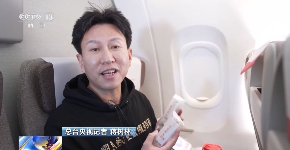 總臺(tái)央視記者 蔣樹林:首先是這個(gè)大白兔的紅豆風(fēng)味的牛奶,這還是我頭一次看到這樣的口味。還有這個(gè)桂花條頭糕,是上海老字號(hào)出產(chǎn)的??梢哉f(shuō)這個(gè)小小的餐盤把上海的土特產(chǎn),搬到了C919飛機(jī)上。
