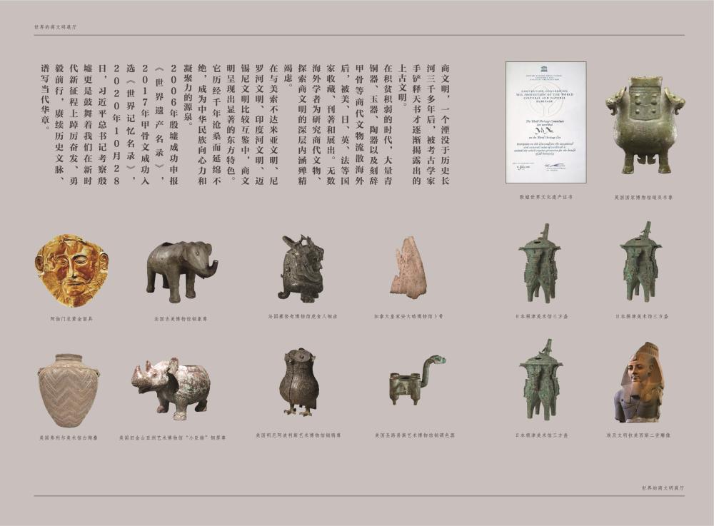 基本陳列將長(zhǎng)期對(duì)公眾開放,展示幾代殷墟考古人接力前行、不斷求索,取得了一次又一次重要發(fā)掘成果,對(duì)夏商都邑的深入研究,為不同時(shí)期不同區(qū)域的商文化研究提供了對(duì)比標(biāo)尺。眾多首次亮相的各類珍貴文物再現(xiàn)了商朝繁盛的城市文明,完善的禮樂(lè)文明、發(fā)達(dá)的青銅文明、燦爛的文字文明以及高超的科技文明。全面系統(tǒng)地展現(xiàn)了我國(guó)商代晚期都城的風(fēng)貌,讓全世界看到一個(gè)中華文明早期發(fā)展階段最為輝煌的時(shí)代——大邑商。