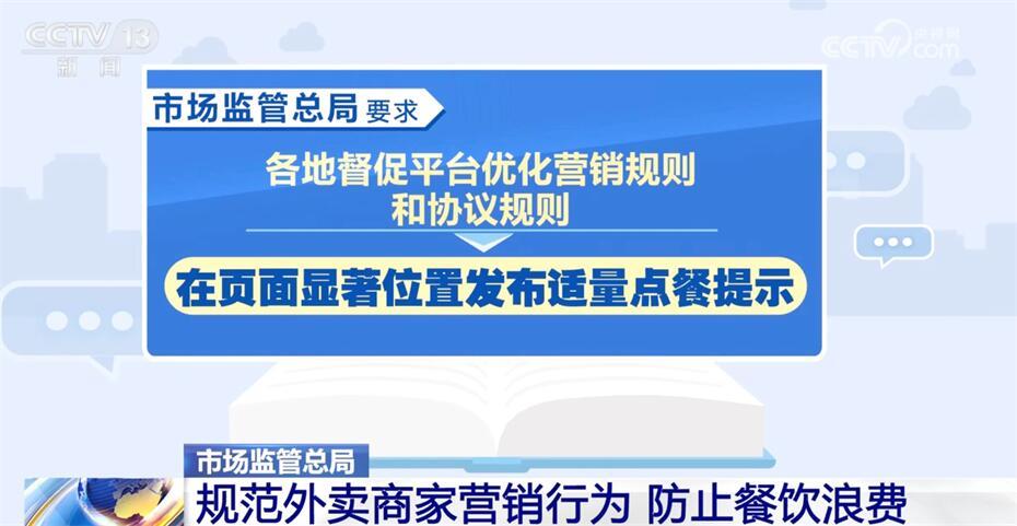 市場監(jiān)管總局要求各地督促平臺優(yōu)化營銷規(guī)則和協(xié)議規(guī)則,在頁面顯著位置發(fā)布適量點餐提示;鼓勵平臺健全激勵機制,推動商家開發(fā)、提供、推廣小份餐品,合理設(shè)置餐品起送價格,優(yōu)化滿減湊單機制,不將主食納入滿減優(yōu)惠展示范圍,鼓勵使用食安封簽。線上線下、同頻同步開展防止餐飲浪費與食品安全監(jiān)督檢查,持續(xù)開展“隨機查餐廳”行動。對造成明顯浪費、嚴重浪費且拒不改正的,依法嚴厲處罰并公開曝光。