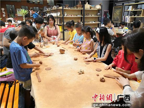 分會場的活動現(xiàn)場一樣是熱鬧非凡,“七弦雅韻”——古琴演奏會、“茶香千年”茶藝表演、創(chuàng)藝教室藝術(shù)體驗活動、篆刻互動體驗、壯鄉(xiāng)山歌會、“樂樂陶陶”——陶藝坊制陶體驗同樣是精彩連連。