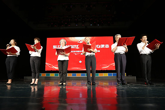 活動(dòng)現(xiàn)場,老中青三代黨員集體朗誦《陶然初心》。