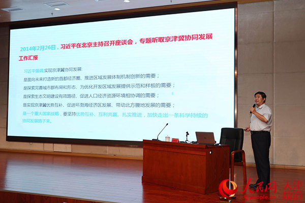 人民網天津6月28日電 (唐玉潔、陶建、孫一凡)6月27日下午,中共北京市委講師團、天津市習近平新時代中國特色社會主義思想講師團、河北省委講師團聯(lián)合組織的“壯麗七十載 協(xié)同譜新篇”京津冀協(xié)同發(fā)展五周年聯(lián)合宣講活動在天津濱海新區(qū)舉辦,北京市委黨校刁琳琳、南開大學劉剛、河北省社科院劉來福三位專家學者同臺共話新中國成立70周年特別是京津冀協(xié)同發(fā)展戰(zhàn)略實施五年來三地的發(fā)展變化。北京市委講師團副團長李志東,天津市講師團副團長、天津市社科聯(lián)黨組成員、專職副主席張博穎出席會議,河北省委講師團代表等出席,濱海新區(qū)區(qū)委常委、宣傳部部長馬波主持會議,來自濱海新區(qū)的近200名黨員干部現(xiàn)場聆聽了報告。