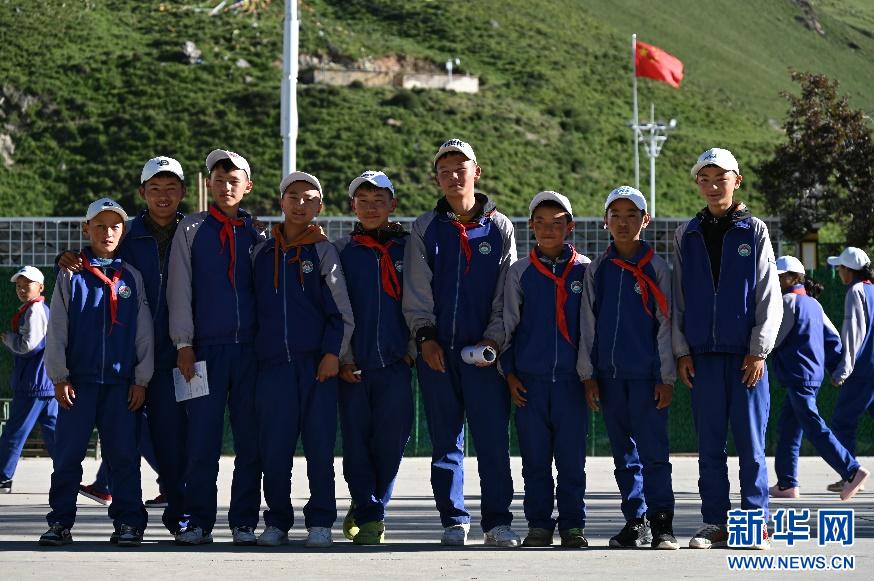 8月14日,放學(xué)的學(xué)生在鏡頭前合影。新華網(wǎng)發(fā) 劉蒙青攝