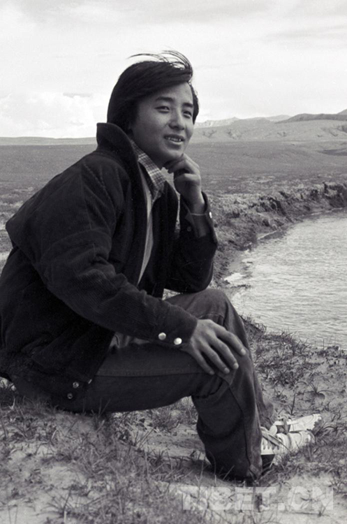 這是原文部辦事處(現(xiàn)尼瑪縣)機(jī)要科陳杰在小鎮(zhèn)旁河邊請記者為他拍照留念,以寄回家鄉(xiāng)免父母擔(dān)憂(唐召明1987年攝)