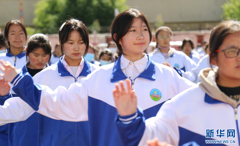 “叮鈴鈴”……隨著下課鈴聲響起,西藏山南市第二高級中學操場上交替響起安徽巢湖民歌與西藏傳統(tǒng)特色歌曲,同學們舞動身姿,跳起頗具民族特色的舞蹈。