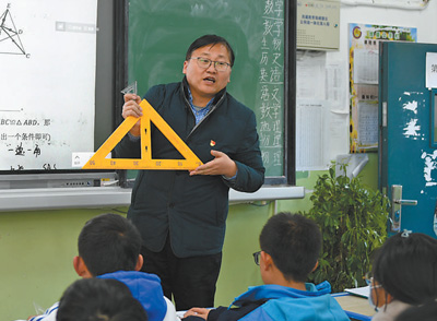 繁忙的管理工作以外,吳智勇主動承擔(dān)了初二年級一個班的數(shù)學(xué)教學(xué)工作。每個學(xué)期,他都會收兩到三名教師作“徒弟”,他說:“我會查看他們的教學(xué)計劃、教學(xué)備課材料,盡量多聽他們的課,并在課后進行輔導(dǎo)?!敝灰挥锌?,他還會隨機聽本地教師講的數(shù)學(xué)課,課后進行交流。
