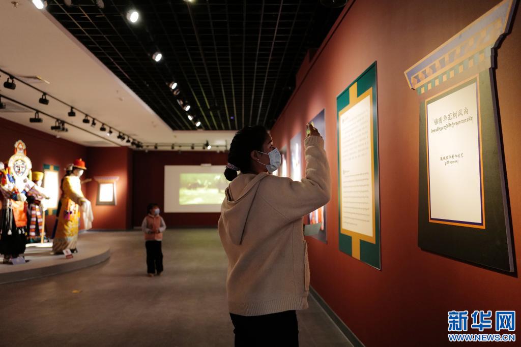 4月3日,市民在拉薩市非物質(zhì)文化遺產(chǎn)代表性項(xiàng)目展上觀展拍照。新華社記者 孫瑞博 攝