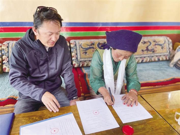 優(yōu)秀學(xué)員簽訂協(xié)議。圖由拉薩市婦聯(lián)提供