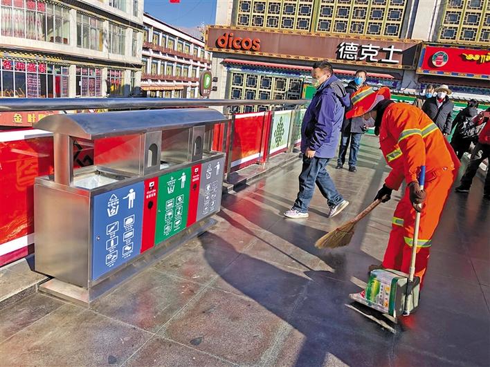 據(jù)城關(guān)區(qū)環(huán)衛(wèi)局局長米瑪次仁介紹,截至2019年底,城關(guān)區(qū)環(huán)衛(wèi)局與拉薩城投潔達(dá)環(huán)衛(wèi)保潔有限公司積極與部分企事業(yè)單位、學(xué)校及社區(qū)等47個區(qū)域?qū)?,分別投放了四分類垃圾箱120套、240L垃圾桶658個、有害垃圾消納袋116個、腳踏兩分類垃圾桶321個。已建成并投入使用的積分兌換超市3家、垃圾分類投放亭4座、垃圾分類可回收物臨時存放點13個、有害垃圾臨時存放點2個;采購2臺可回收物運(yùn)輸車輛、1臺有害垃圾運(yùn)輸車輛、2臺餐廚垃圾運(yùn)輸車輛和1臺大件垃圾運(yùn)輸車輛。在春節(jié)和藏歷新年期間,抽調(diào)工作人員在娘熱南路、北京東路、江蘇南路、康昂南路、林廓東路、沖賽康天橋、熱木其天橋、八廓商城天橋、阜康天橋等人流量較多的區(qū)域放置了垃圾四分類果皮箱。