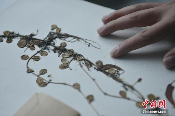 圖為保存于中科院成都生物所標(biāo)本館里的貝葉芒毛苣苔。 中新社記者 張浪 攝