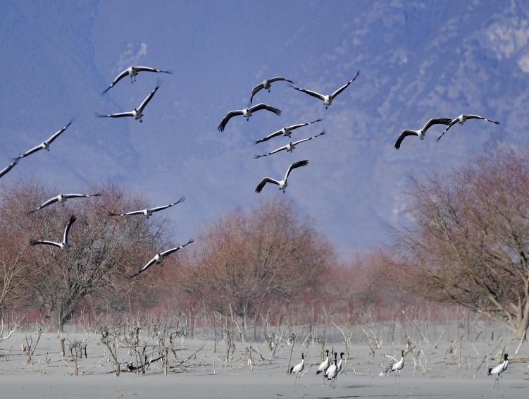 冬季,成群結(jié)隊(duì)的黑頸鶴遷徙到西藏林芝市,雅魯藏布江及江畔的農(nóng)田成了它們越冬的樂園。[詳細(xì)] -