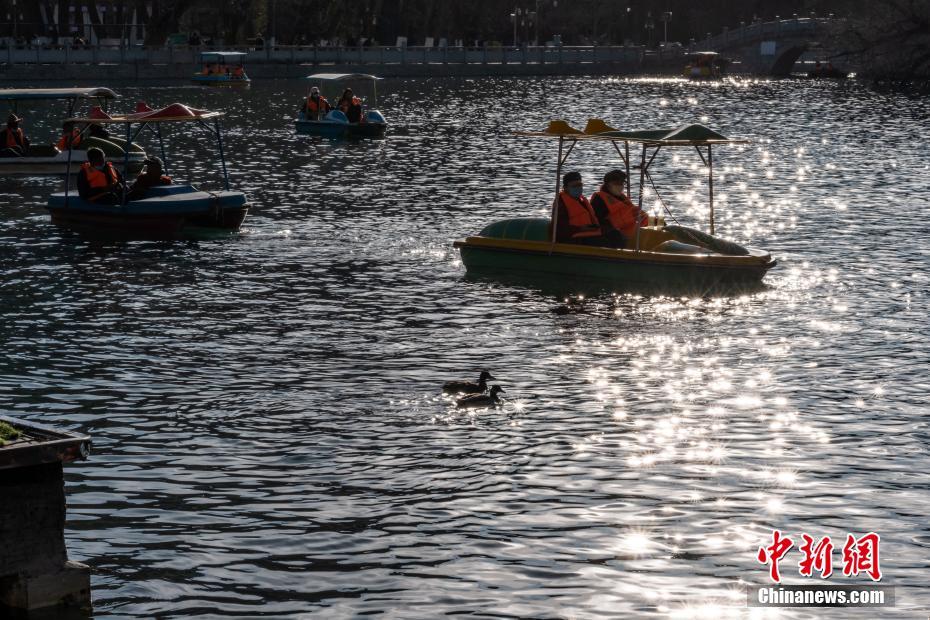 2月24日,西藏拉薩宗角祿康公園,民眾蕩舟游玩。隨著近日氣溫回暖,西藏的春天也悄然到來。中新社記者 何蓬磊 攝