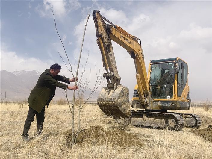 死了那么多樹,為什么還在堅持?“那幾年,在這里隨手捧起一把黃土,還會沙化。我必須堅持下來?!彼骼柿_布說。2015年春天,索朗羅布再次貸款40余萬元購買了一臺挖掘機,準(zhǔn)備修建水渠和挖坑。同年3月,索朗羅布又一次獨自種樹苗,母親卓瑪央金心疼壞了,于是帶著村里姐妹們前來幫忙。不僅如此,她們還帶來了防止草原鼠啃食樹根的土方法,用塑料瓶圍著樹根包一圈,既能防止草原鼠搞破壞,還能節(jié)省成本。
