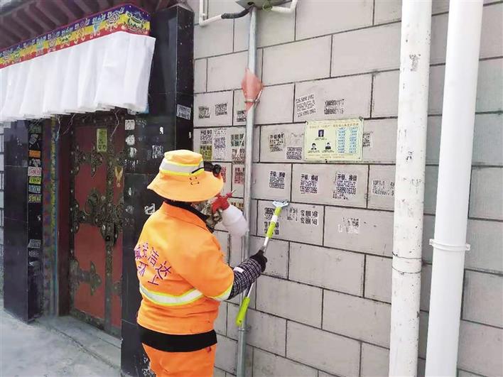 拉薩城關(guān)區(qū)潔達(dá)環(huán)衛(wèi)保潔有限公司北郊352分隊隊長卓瑪告訴記者,一般出來貼小廣告的人都是晚上出動,主要貼在商業(yè)街、公園等人流密集場所。有時候環(huán)衛(wèi)工人們剛清理完自己負(fù)責(zé)區(qū)域的小廣告,第二天早上又會看到,地面、座椅、墻壁等地又已經(jīng)貼了上百個小廣告。