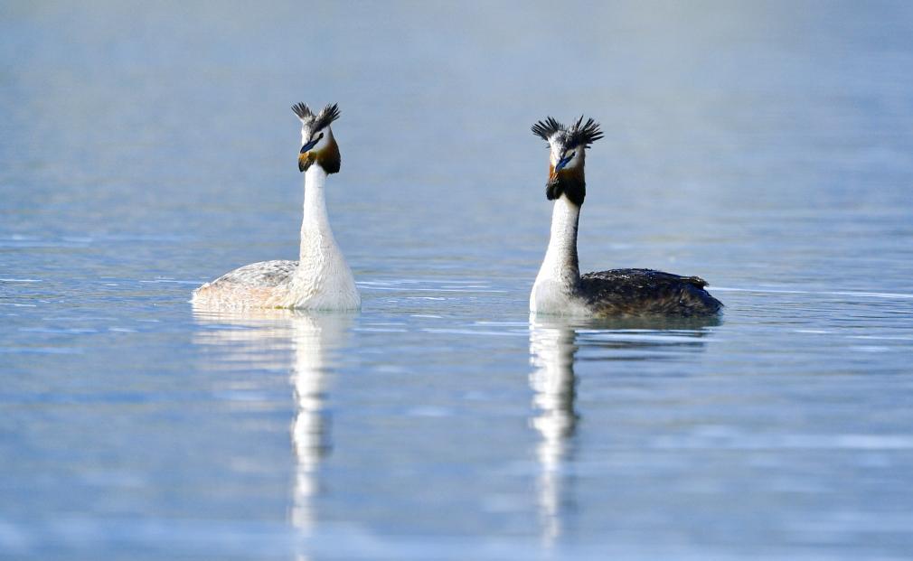 夏日里,鳳頭??和小??在西藏拉薩拉魯濕地國家級(jí)自然保護(hù)區(qū)水面上嬉戲。[詳細(xì)] -
