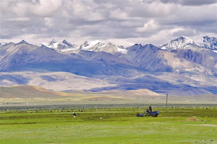 夏日里,拉薩市當(dāng)雄縣境內(nèi)的天然草場綠草如茵,景色優(yōu)美。圖為當(dāng)雄縣格達鄉(xiāng)境內(nèi)的草場。新華社記者 張汝鋒 攝