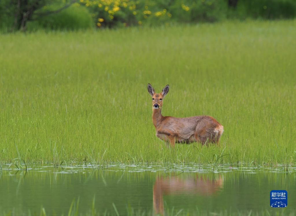 這是在四川省阿壩藏族羌族自治州紅原縣境內拍攝的馬鹿(2021年7月1日攝)。新華社 王冀川 攝