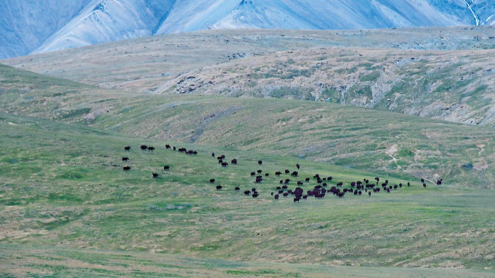 青海省玉樹藏族自治州曲麻萊縣曲麻河鄉(xiāng)昂拉村生態(tài)管護員濤西昂扎在雜日尕吶山巡護途中拍攝到了一個極為震撼、又特別罕見的場面:一個種群數(shù)量達二三百頭的野牦牛群正在悠閑地吃草。[詳細] -