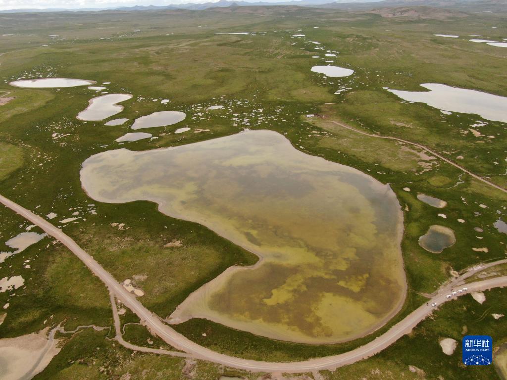 這是7月23日拍攝的長江源地區(qū)的查旦濕地(無人機照片)。新華社記者 張龍 攝