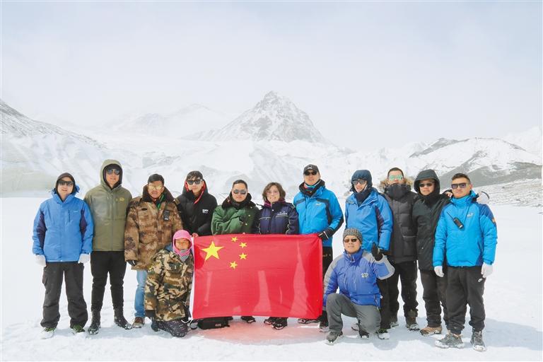監(jiān)測(cè)科研人員在格拉丹東檢測(cè)點(diǎn)合影留念。