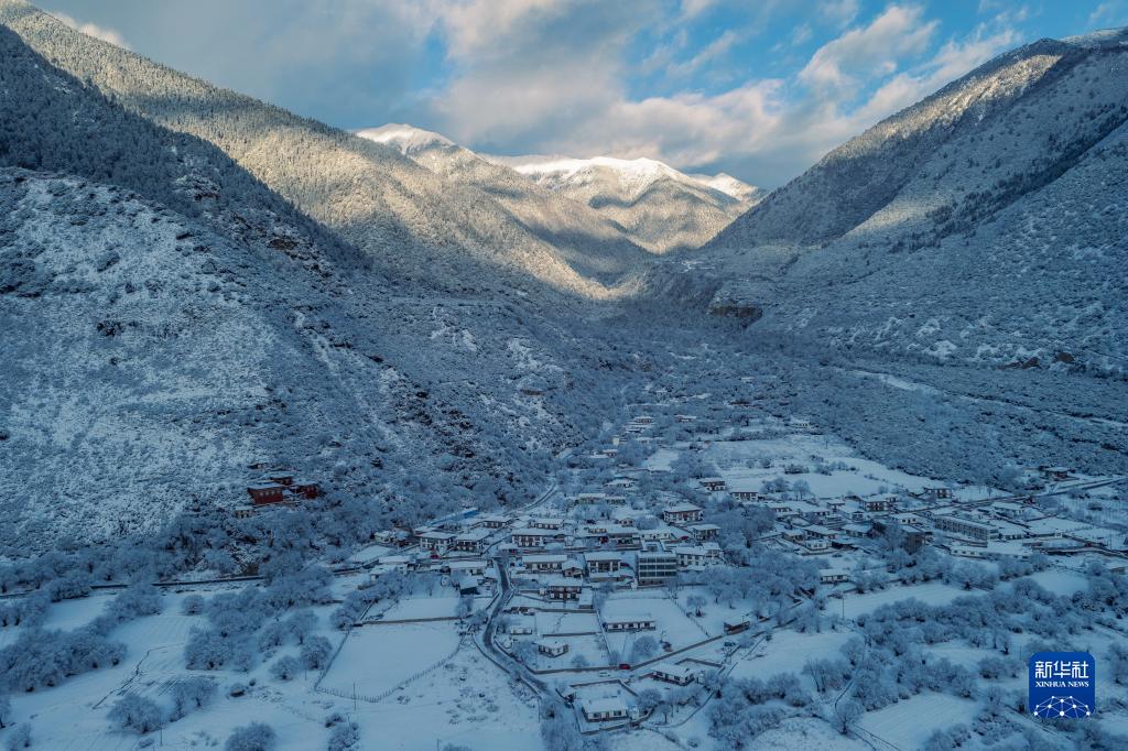 西藏林芝市米林縣派鎮(zhèn)雪景(1月14日攝,無人機照片)。新華社發(fā)(董志雄 攝)