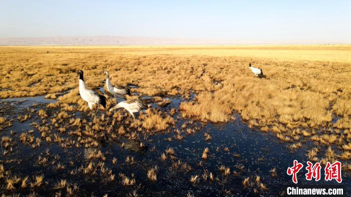 圖為柴達(dá)木盆地內(nèi)的野生黑鶴。 烏蘭縣委宣傳部 供圖
