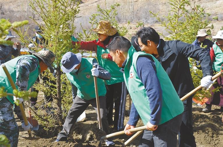 近日,日喀則市江孜縣政協(xié)以創(chuàng)建“委員生態(tài)文明建設示范點”為契機,組織政協(xié)委員開展義務植樹造林活動。身著志愿服務馬甲的“生態(tài)衛(wèi)士”們熱情高漲、干勁十足,揮鍬鏟土、扶植苗木、培實新土,種植松樹、蘋果樹、桃樹共計800余株。
