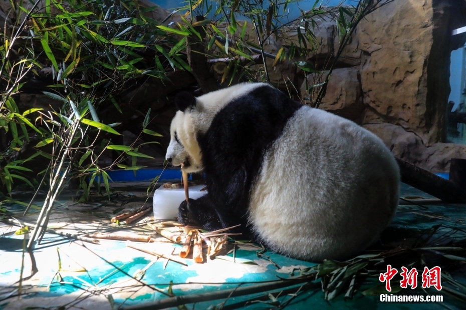 7月6日,四川成都動物園,一只大熊貓在冰塊旁吃竹筍。當日,成都市高溫天氣持續(xù)。 [詳細] -