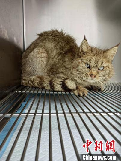 圖為被救護的荒漠貓“黃老太”?!∏嗪R吧鷦游锞茸o繁育中心供圖