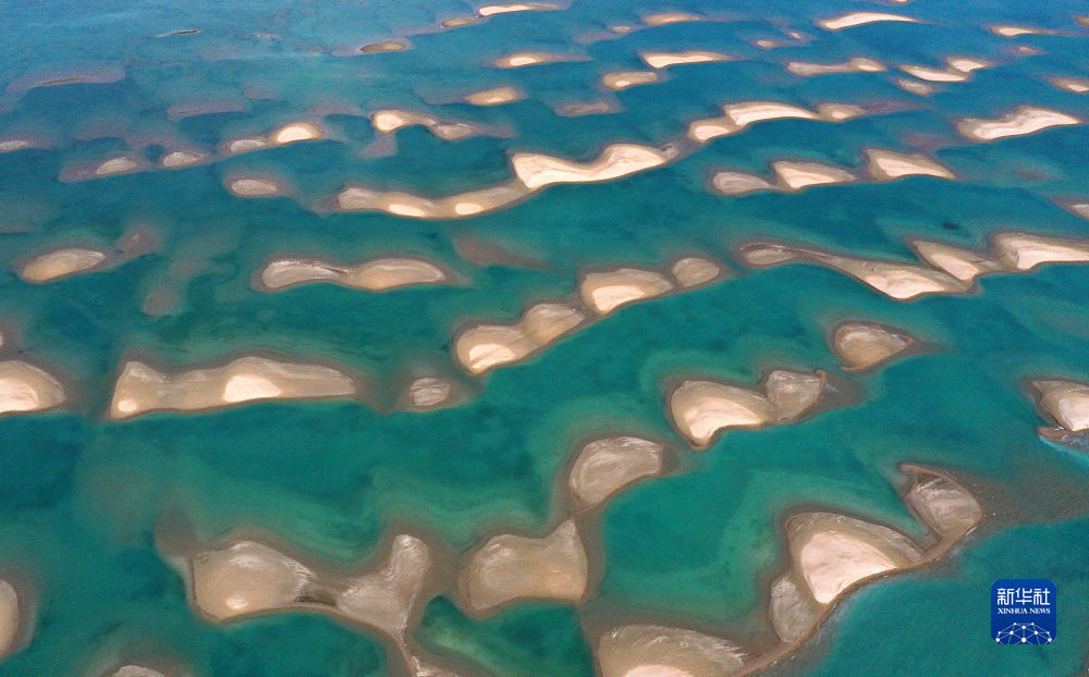 這是青海湖鳥島濕地一景(2020年7月17日攝,無(wú)人機(jī)照片)。新華社 楊濤 攝
