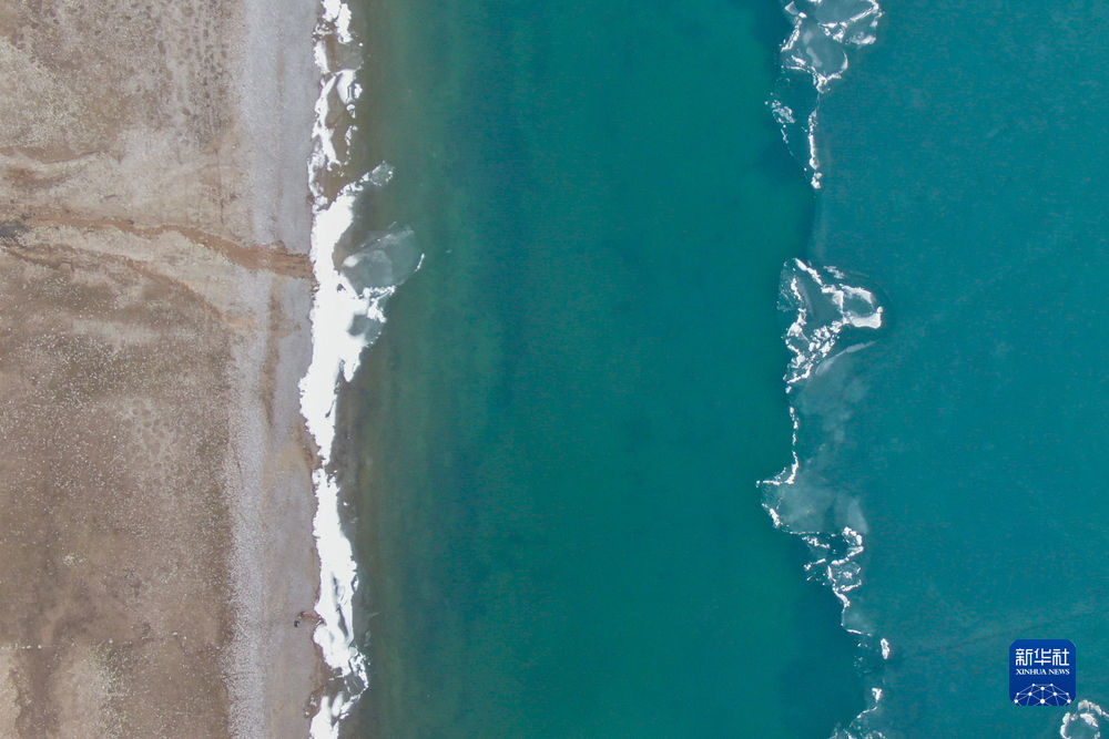 這是2020年4月20日在青海省海南藏族自治州共和縣黑馬河鎮(zhèn)拍攝的青海湖一景(無(wú)人機(jī)照片)。新華社記者 張龍 攝