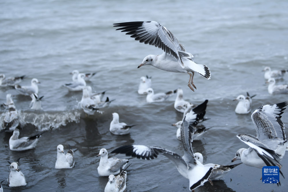 這是2020年4月8日在青海省海北藏族自治州剛察縣青海湖畔拍攝的棕頭鷗。新華社記者 張龍 攝