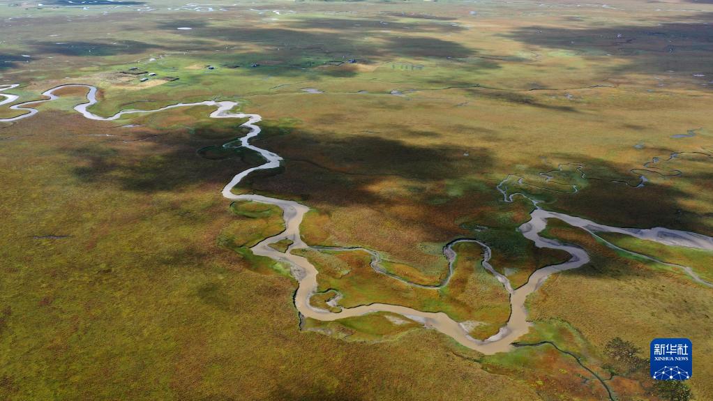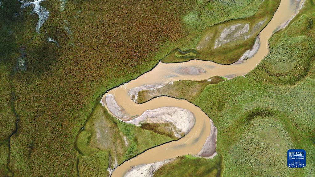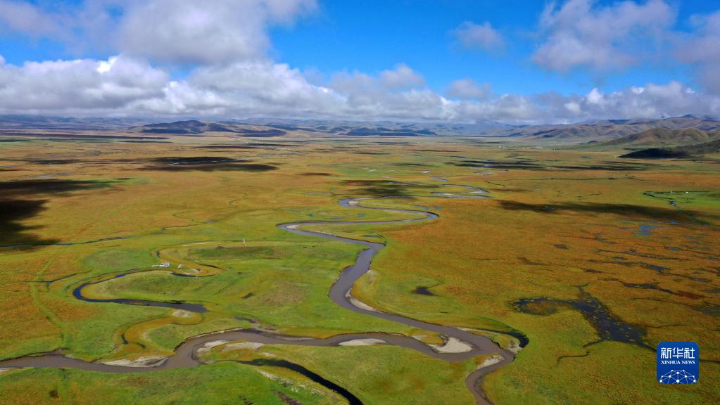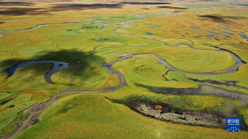 這是瑪曲縣阿萬(wàn)倉(cāng)濕地秋景(2022年9月21日攝,無(wú)人機(jī)照片)。新華社記者 陳斌 攝
