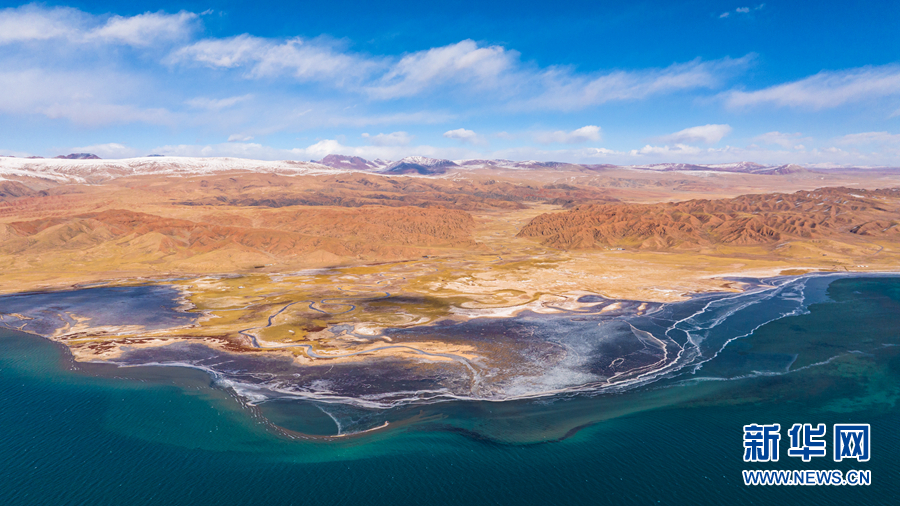 湖泊與遠(yuǎn)處的山峰交相輝映,景色壯觀。新華網(wǎng) 李友崇 攝