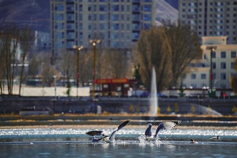 候鳥大約是拉薩入冬的標(biāo)志。初冬時節(jié),拉魯濕地和拉薩河邊,到處都是從遠(yuǎn)方飛來越冬的黃鴨、斑頭雁。隨著拉薩生態(tài)環(huán)境更加優(yōu)美,這些可愛的精靈選擇在此越冬,讓許多觀鳥愛好者心動。每天清晨天還未亮,他們就早早地守候在水邊,只為記錄下候鳥迎著第一縷朝陽翩然飛舞的景象。