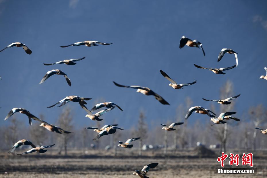 近年來(lái),拉薩水系治理工程的實(shí)施,讓拉薩河周邊環(huán)境變得更好。每年10月中下旬,來(lái)拉薩越冬的候鳥(niǎo)不斷增多,在拉薩河畔處處都能看見(jiàn)斑頭雁、紅嘴鷗、黃麻鴨等鳥(niǎo)類的身影。據(jù)悉,目前,拉薩河城區(qū)段形成了3公里長(zhǎng)的湖面水城,水城面積達(dá)1258畝,平均水深2.5米,蓄水量約105萬(wàn)立方米,不僅增加了空氣濕度、含氧量,完善了城市防洪體系,還提高了地下水位,鳥(niǎo)類種群數(shù)量增加。圖為一群黃麻鴨在拉薩河畔的農(nóng)田上飛翔。 貢嘎來(lái)松 攝
