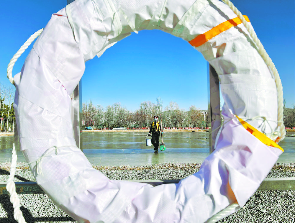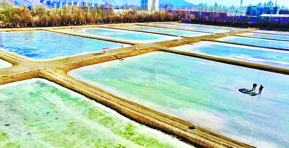 陽光透過冰面照射在18口冰封的魚塘里,為過冬的小魚苗增氧增溫。這片池塘是裸鯉來到裸鯉救護中心的第一站,田文根是這里的一名工作人員,主要負責室外原種場魚苗的培育和水質(zhì)監(jiān)測工作。據(jù)他介紹,魚塘的水質(zhì)決定著魚苗的健康狀況。在冬季,及時掃雪是一項非常重要的工作,因為冰層下面的裸鯉魚苗是靠浮游植物通過光合作用產(chǎn)生的氧氣生存,如果雪附著在冰層上,陽光無法透進,就容易造成缺氧。