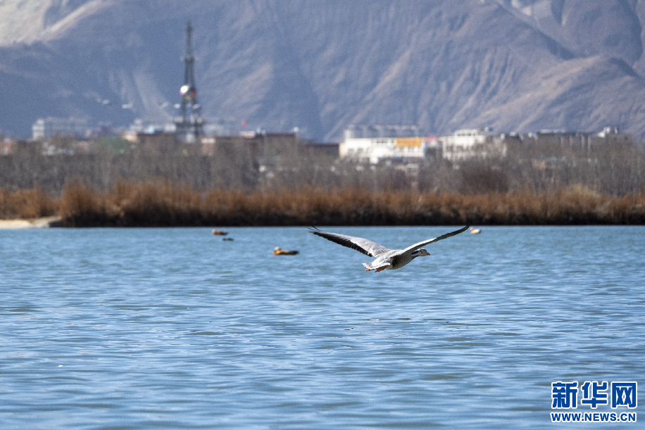 2月2日,在拉魯濕地飛翔的斑頭雁。新華網(wǎng) 旦增努布 攝