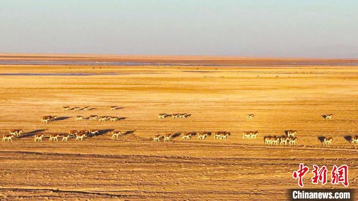 在平均海拔4500多米的阿爾金山上,遼闊的依協(xié)克帕提湖冬雪初融,清澈的湖面上尚未融盡的薄冰宛如一面光滑的鏡子,將高原蔚藍(lán)的天空倒映在湖面上;芳草叢生的湖岸邊,有著“高原坦克”之稱的野牦牛在水源地附近悠閑漫步,享受著大自然賜予的春日“盛宴”;時(shí)而有三五成群的藏羚羊從牦牛群旁經(jīng)過(guò),他們有的邁著小碎步追逐嬉戲,有的則停步駐足,好奇地打量著周邊的環(huán)境;擅長(zhǎng)奔跑的藏野驢成群結(jié)隊(duì)地奔跑著,飛奔的藏野驢群騰起一路煙塵,展現(xiàn)出別具一格的野性之美……