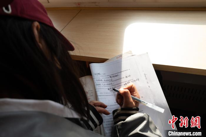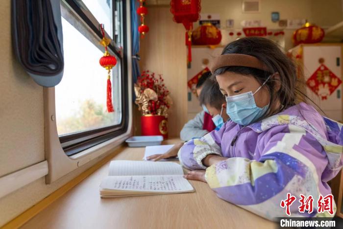 當?shù)貙W生在“慢火車”上的學習車廂寫作業(yè)?!「惰?攝