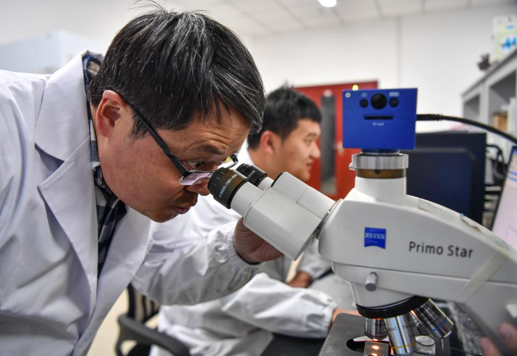 在西藏高原生物研究所,楊樂在實驗室中觀察動物標(biāo)本(3月2日攝)。新華社記者 晉美多吉 攝