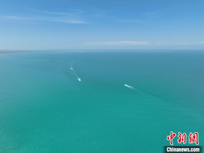 資料圖為航拍游輪在青海湖遨游?!∑钤鲚?攝